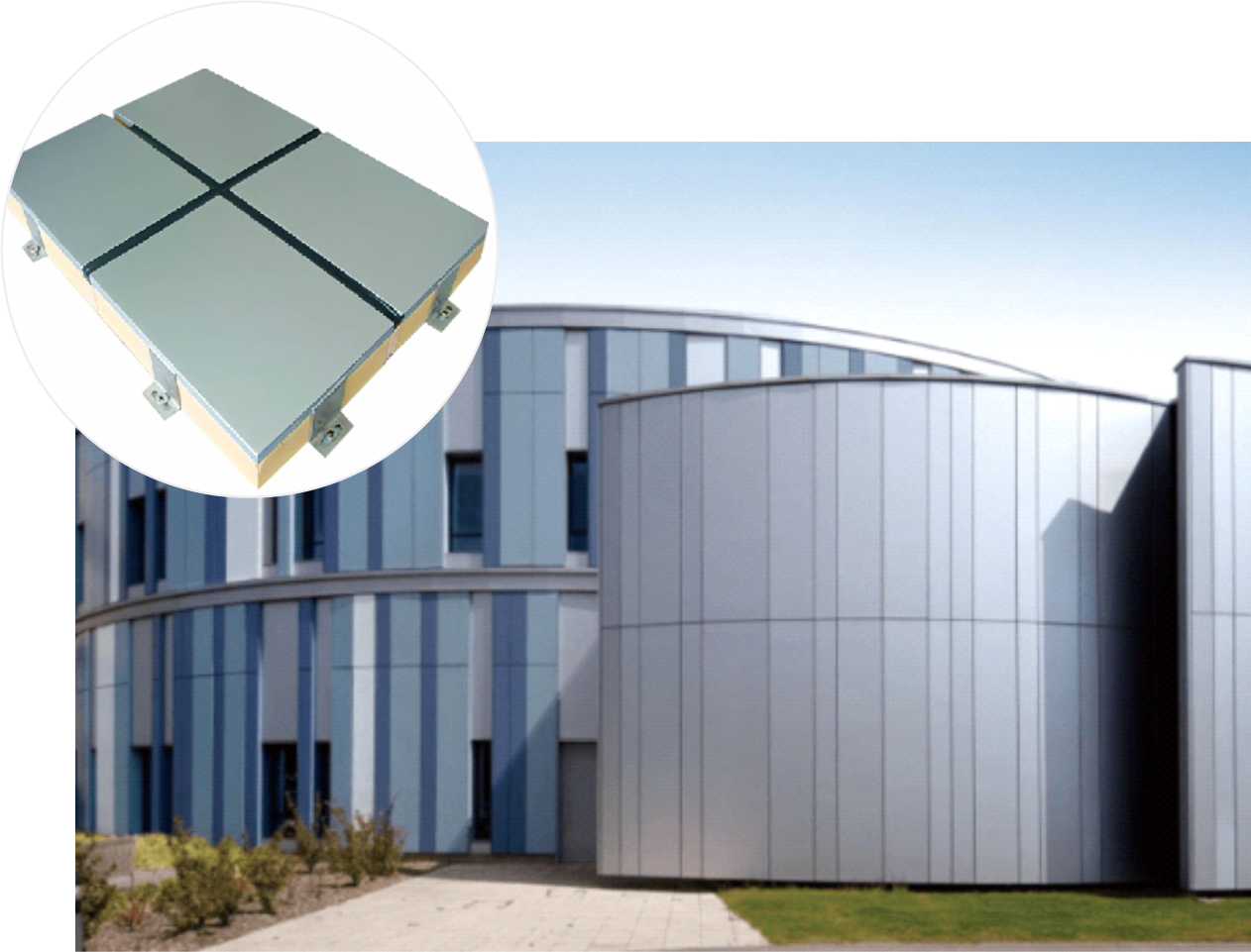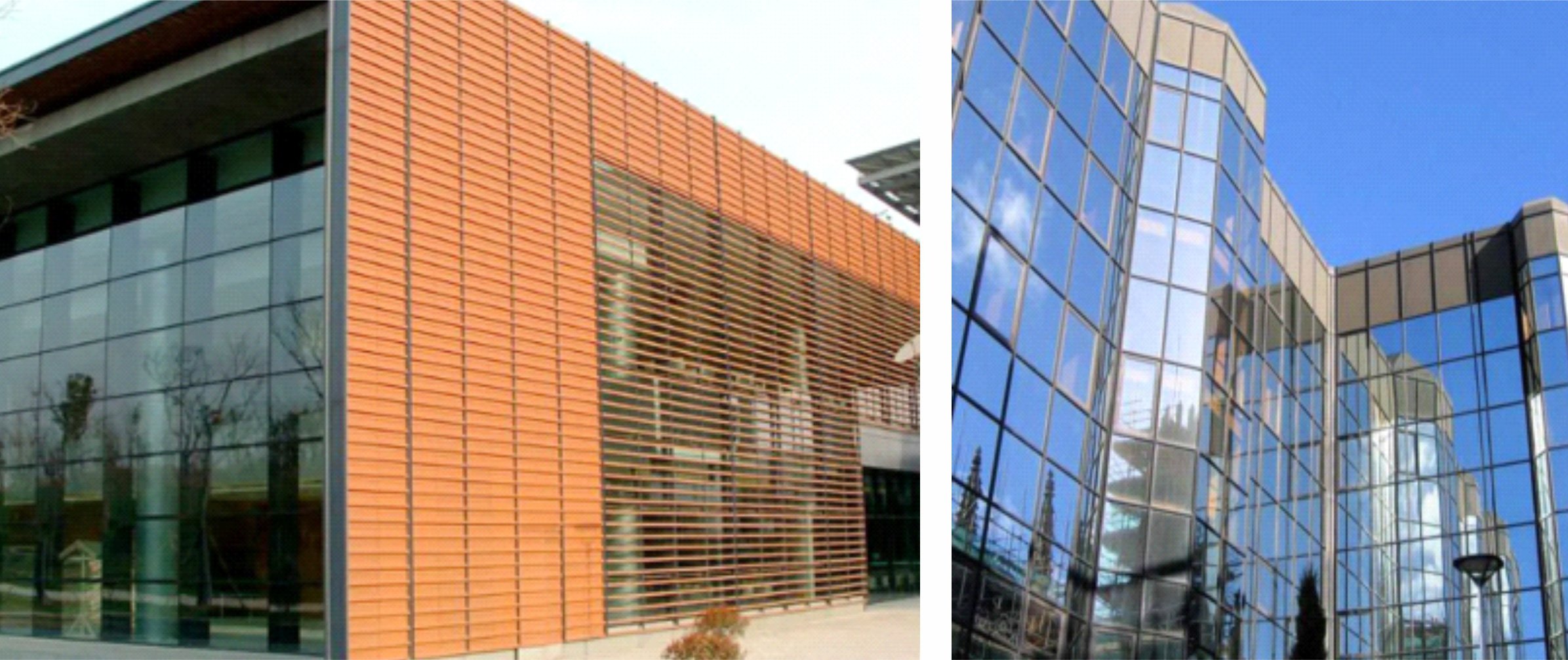 | 支架是幕墻承重的結(jié)構(gòu)組成部分,一般有鋼制和鋁合金制兩種,支架的品質(zhì)直接影響到鋁板幕墻的整體質(zhì)量和安全性。 | 鋁板幕墻一般采用鋁合金板和彩鋼板作為面板材料,另外也有玻璃、石材等面板材料。面板的種類直接影響到鋁板幕墻的外觀和色彩。 |